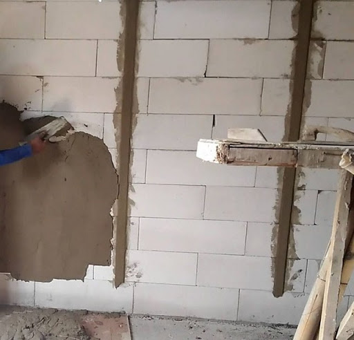 Kepalaan plesteran adalah plesteran yang memanjang vertikal dengan ukuran lebar 5 cm tebal sesuai plesteran 1,5-2 cm. Tinggi kepala sesuai dengan dinding. Fungsi dari kepala kolom adalah untuk mempermudah penjidaran plesteran dinding.